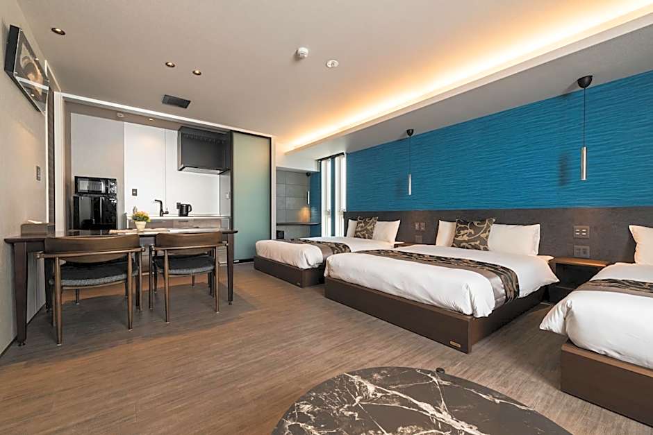 Spacious 441 sqft Standard Family Room with 3 double beds, perfect for 6 adults and 3 children. Enjoy air conditioning, a kitchen, and a private bathroom for a comfortable stay.